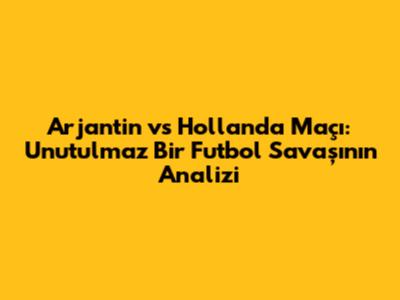 Selam millet! Bugün sizlere futbol tarihinin en heyecan verici ve unutulmaz maçlarından biri olan Arjantin - Hollanda karşılaşmasını tüm detaylarıyla inceleyeceğiz. Bu maç, sadece iki güçlü takımın mücadelesi değil, aynı zamanda futbolun güzelliğini ve dramını bir arada sunan eşsiz bir deneyimdi. İşte Arjantin ile Hollanda arasındaki o efsanevi maçın derinlemesine bir analizi!