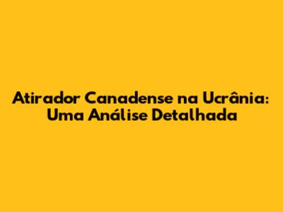 Atirador Canadense Na Ucrânia: Uma Análise Detalhada