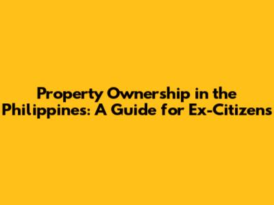 Property Ownership In The Philippines: A Guide For Ex-Citizens